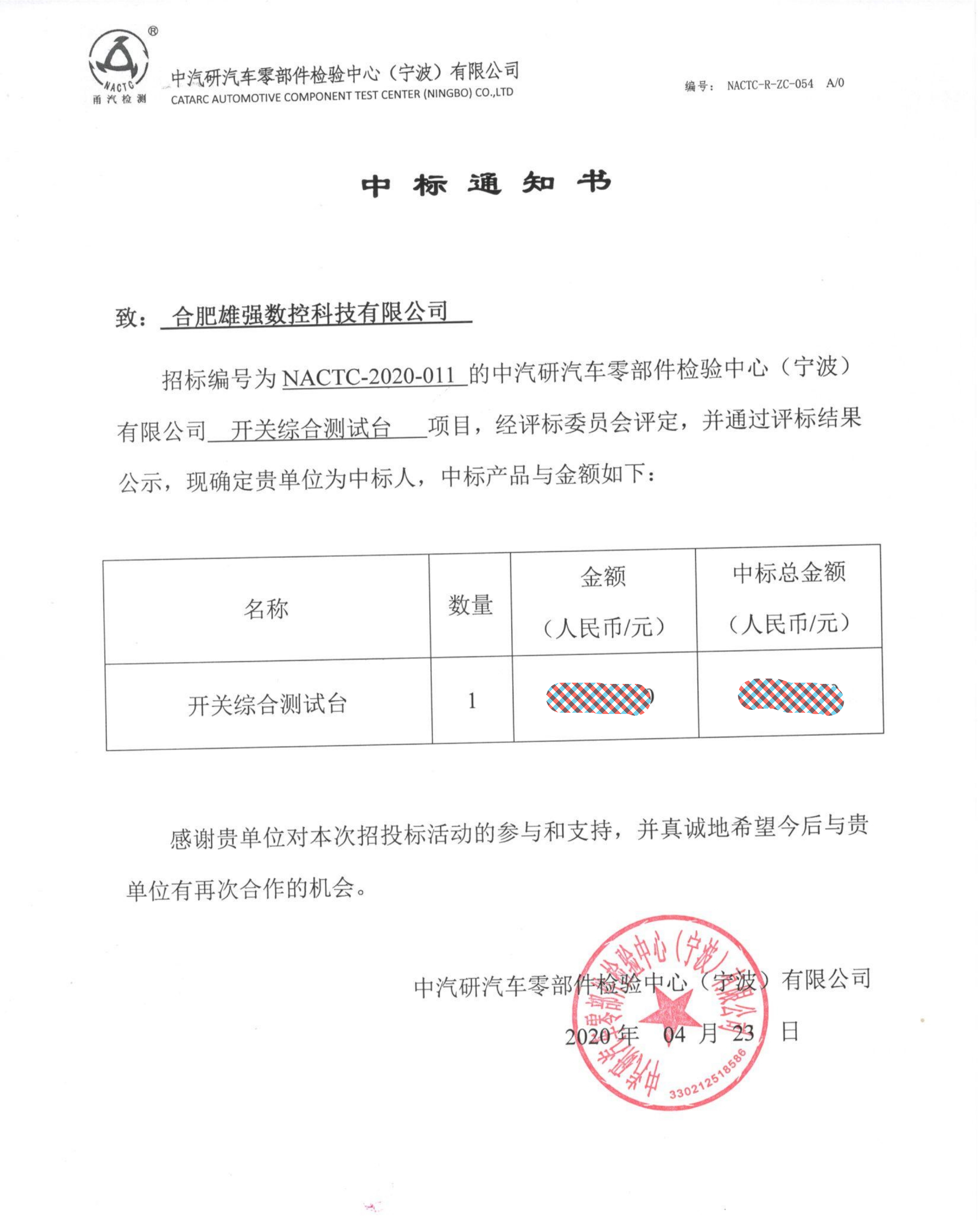 合肥雄強數(shù)控中標中國國家汽車研究院試驗臺項目,標的為汽車零部件檢測實驗室新建項目,項目包涵汽車整車開關(guān)電器高低溫耐久試驗臺、汽車座椅綜合性能試驗臺、汽車高低溫耐久疲勞試驗臺等。