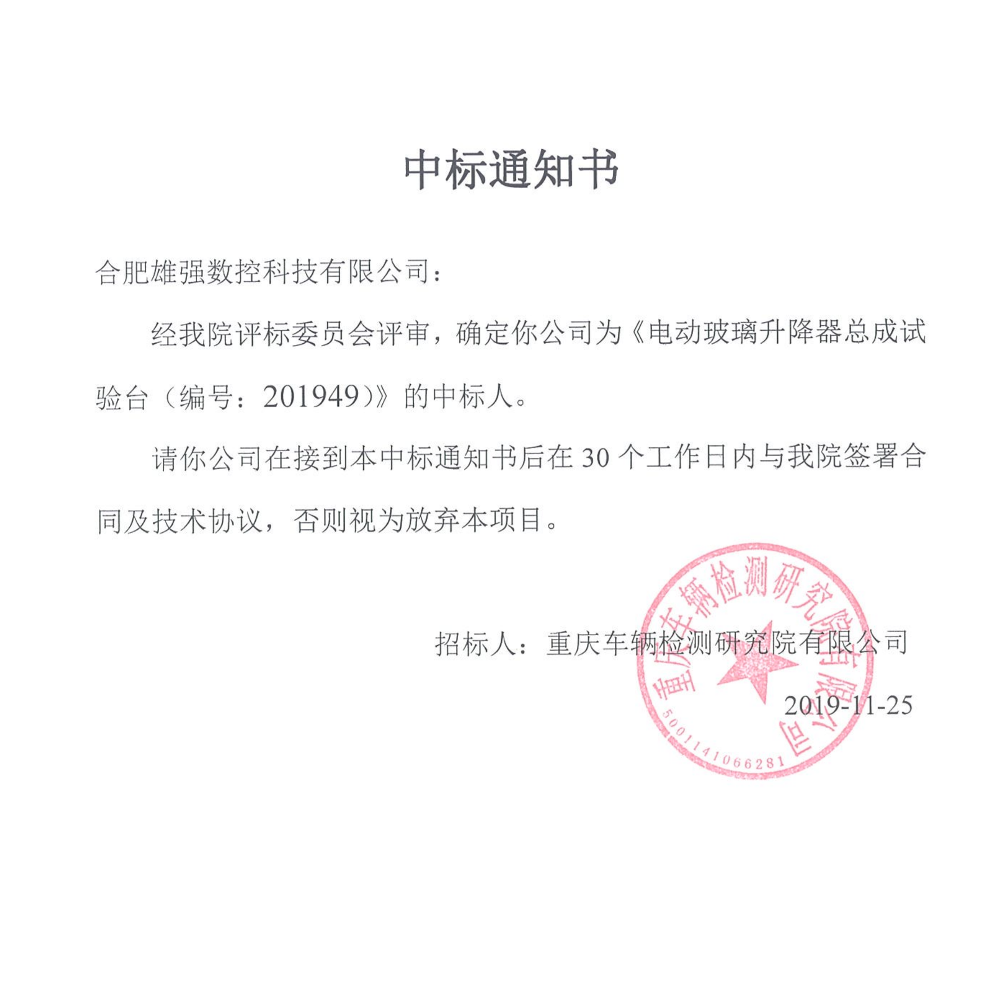 熱烈祝賀我司在眾多競爭對手的角逐下脫穎而出,多次中標(biāo)招商局集團(tuán)重慶車輛檢測研究院有限公司。此次招商局集團(tuán)招投標(biāo)官網(wǎng)上,此次中標(biāo)見證我司各方面綜合實(shí)力。